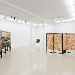 El runrún presente en la sala (a diferentes grados en el alejamiento de lo que se entiende como «pintura-pintura») se concentra en un modelo reducido, una suerte de relicario o maqueta del biombo que parece actuar como transición a lo que vemos en las paredes en menor escala, mientras unifica la batería de obras. Lo que resultaba ser una ventana-suelo y un diálogo entre lo estable y lo flexible, se sujeta al muro en una serie de paisajes indefinidos e «incoherencias pictóricas», que se acompasan con el ritmo respiratorio del biombo.